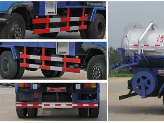 | 整車說明: | 水罐和吸污罐各裝4000kg,介質(zhì):水,1000kg/立方米;液態(tài)污物,900kg/立方米。水罐罐體有效容積:4.2立方米,罐體外形尺寸(直線段長(zhǎng)×直徑)(mm)2100×1700。吸污罐罐體有效容積:4.6立方米;罐體外形尺寸(直線段長(zhǎng)×直徑)(mm)2100×1700。該車僅用4500mm,4700mm軸距改裝,后懸(mm):2030,2230與軸距(mm):4700,4500一一對(duì)應(yīng)。隨底盤選裝駕駛室。防護(hù)材料:Q235A碳鋼,連接方式:左右側(cè)面及后下部防護(hù)均采用焊接連接,后部防護(hù)斷面尺寸(mm):120×50,后部防護(hù)離地高度(mm):500。ABS生產(chǎn)廠家:東風(fēng)電子科技股份有限公司制動(dòng)系統(tǒng)公司;型號(hào):3631010-C2000。 | ||