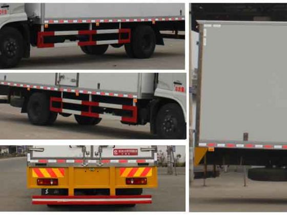 | 整車說(shuō)明: | 廂體頂部封閉,不可開啟。選裝側(cè)面不開門,側(cè)防護(hù)與車輛采用螺栓連接,材料為:Q235A,后下部防護(hù)裝置,材料:Q235A,連接方式:焊接連接,斷面尺寸(mm):100×50,離地高度(mm) :510。該車安裝帶有衛(wèi)星定位功能的行駛記錄儀。安裝帶ABS的底盤,ABS系統(tǒng)控制器型號(hào)及生產(chǎn)廠:4460046440(3631010-C2000)/威伯科汽車控制系統(tǒng)(中國(guó))有限公司(東風(fēng)電子科技股份有限公司制動(dòng)系統(tǒng)公司)。 | ||