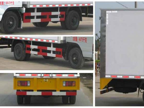 | 整車說明: | 1、車廂頂部封閉,不可開啟;2、選裝側(cè)門;3、側(cè)防護材料: Q235A碳鋼,后防護材料:Q235A碳鋼,與后車架焊接連接,后防護斷面尺寸:100×50(mm);離地高度:450mm;4、可選裝新款前部燈具(前遠光燈、前近光燈、前位燈、前轉(zhuǎn)向燈、側(cè)轉(zhuǎn)向燈)、新款格柵、新款前面板、加寬前保險杠。 | ||