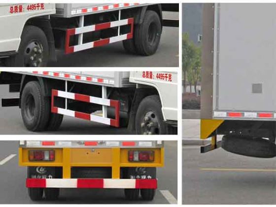 | 整車說明: | 車廂頂部封閉不可開啟。駕駛室準(zhǔn)乘人數(shù)(人):2,3與額定載質(zhì)量(kg):1495,1430一一對應(yīng)。防護材料:Q235A碳鋼,連接方式:左右側(cè)面及后下部防護均采用焊接連接,后部防護斷面尺寸(mm):100×50×5,后部防護離地高度(mm):400。 | ||