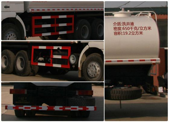 | 整車說明: | 罐體有效容積:19.2立方米,介質(zhì):洗井液,密度:650千克/立方米,罐體尺寸:長7400毫米,長軸2250毫米,短軸1540毫米.側(cè)、后防護(hù)裝置材料材質(zhì):Q235B,側(cè)防護(hù)用螺栓連接,后防護(hù)用螺栓連接,后部防護(hù)裝置斷面尺寸(寬×高)60×100(mm),后部防護(hù)離地高度:540mm.選裝尾部帶液位計(jì).ABS系統(tǒng)生產(chǎn)廠家:西安正昌電子有限責(zé)任公司,廣州市科密汽車制動技術(shù)開發(fā)有限公司,浙江萬安科技股份有限公司.ABS系統(tǒng)對應(yīng)型號:ZQFB-V,CM4XL-4S/4K,VIE ABS-Ⅱ. | ||