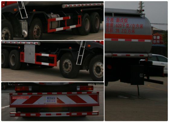 | 整車說明: | 罐體有效容積:28.2立方米,介質(zhì):新戊烷,類項號:3,密度:620千克/立方米,罐體尺寸:長8500毫米,長軸2500毫米,短軸1700毫米.側(cè)、后防護裝置材料材質(zhì):Q235B,側(cè)、后防護均用螺栓連接,后部防護裝置斷面尺寸(寬×高)60×100(mm),后部防護離地高度:540mm.隨底盤選裝駕駛室,選裝罐體帶上護欄.安裝具有衛(wèi)星定位功能的行駛記錄儀,安裝前輪盤式制動器,僅采用底盤子午線輪胎.ABS生產(chǎn)廠家/型號:上海萬捷汽車控制系統(tǒng)有限公司/VIE ABS-II.CA6DF4-24E4對應(yīng)油耗值45.5;BF6M1013-24E4對應(yīng)油耗值45.7;BF6M1013-26E4對應(yīng)油耗值45.9 | ||