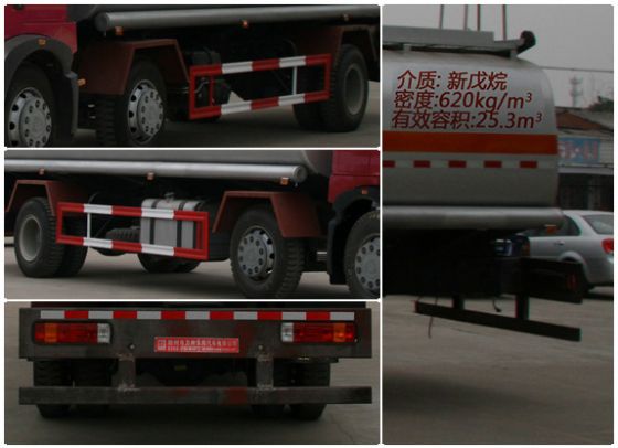 | 整車說明: | 罐體有效容積:25.3立方米,介質(zhì):新戊烷,類項號:3,密度:620千克/立方米.軸距/整車長/后懸/罐體外形尺寸(長×長軸×短軸)的對應(yīng)關(guān)系為:1800+4200/10200/2770/7350/2500/1700;1800+4800/11000/2970/8150/2350/1635.隨底盤選裝駕駛室.側(cè)、后防護裝置材料材質(zhì):Q235B,側(cè)、后防護均用螺栓連接,后部防護裝置斷面尺寸(寬×高)60×100(mm),后部防護離地高度:540mm.安裝具有衛(wèi)星定位功能的行駛記錄儀,安裝前輪盤式制動器,僅采用底盤子午線輪胎.ABS系統(tǒng)型號為4460046300,生產(chǎn)企業(yè)為威伯科汽車控制系統(tǒng)(中國)有限公司.發(fā)動機MC05.21-40,MC07.21-40,MC07.24-40對應(yīng)油耗申報值分別是34.2,34.6,34.9L/100km. | ||